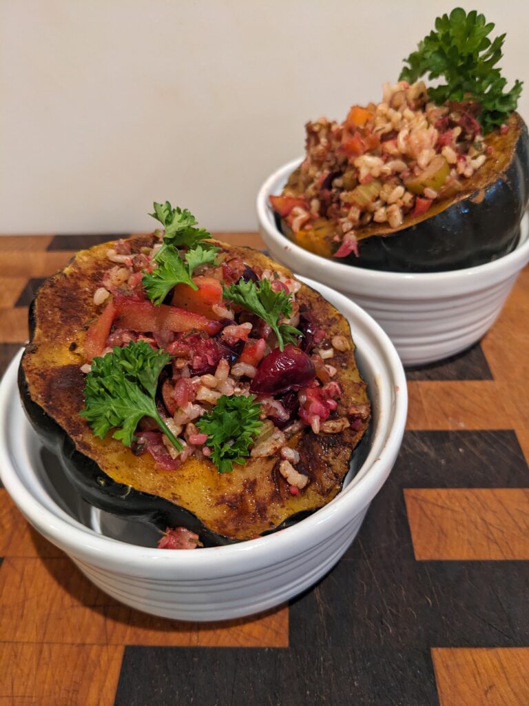 If you’re looking for a plant-based dish for Thanksgiving, stuffed acorn squash is perfect. Some dishes just feel like fall.