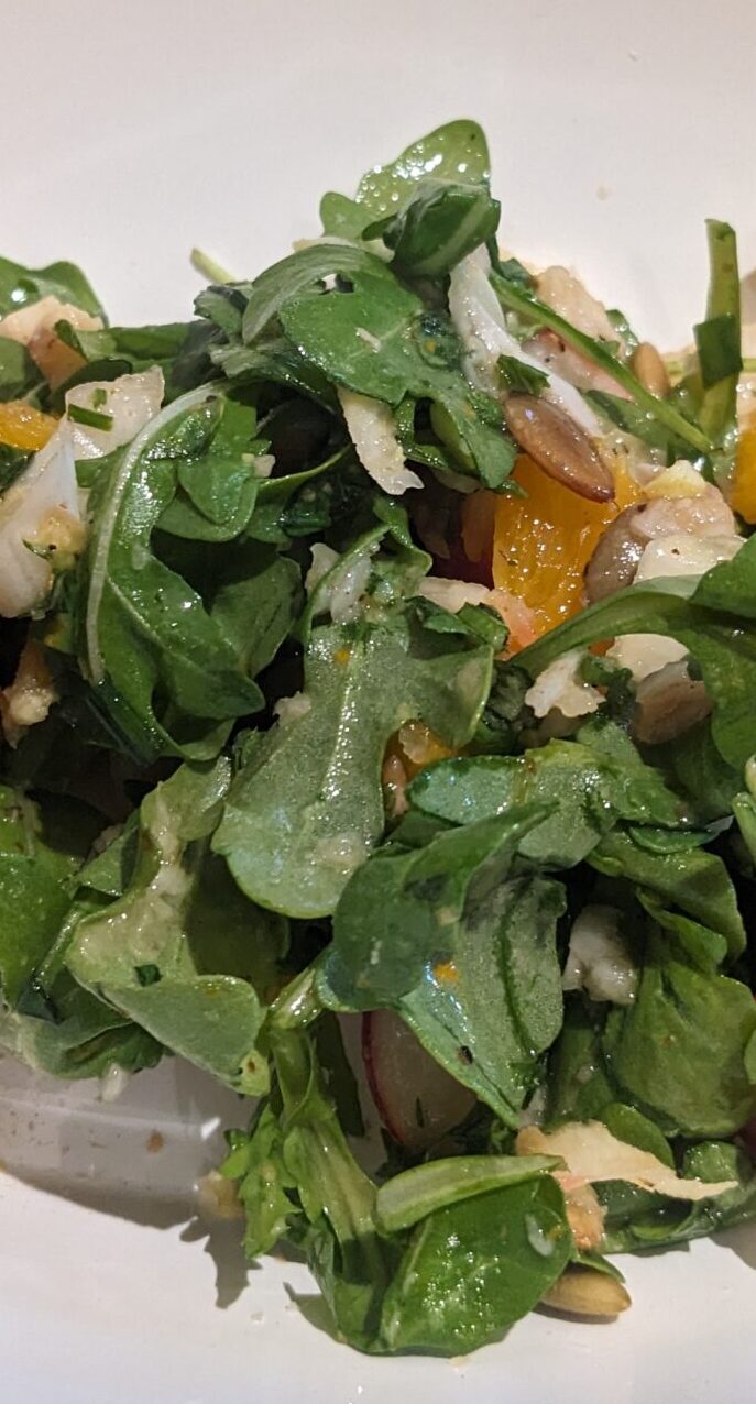 I know it’s cliche to say, “We’re big salad eaters” since we’re plant-based, but I grew up on fresh salads from my mother’s garden, and this fennel and orange radish salad is one of my favorites. Momma started a lifelong love of fresh fruits and vegetables with her gorgeous gardens, and a solid, crisp salad is refreshing and yummy as often as I can get one.