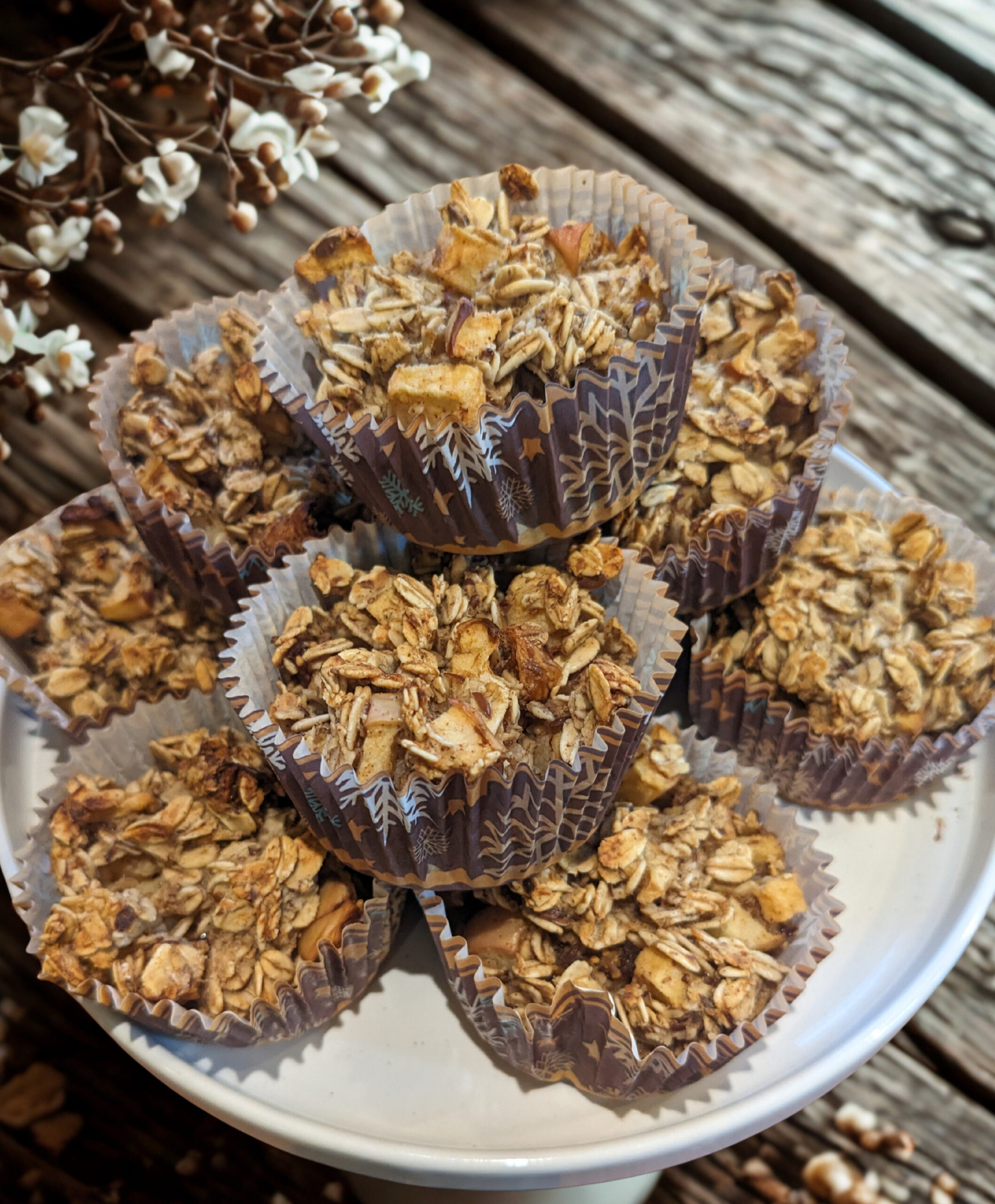 - These come in at about 130 calories per cupcake (12 cupcakes per batch) versus a typical bakery apple muffin at about 420 calories, saving about 290 calories each. Plus tons of fiber!